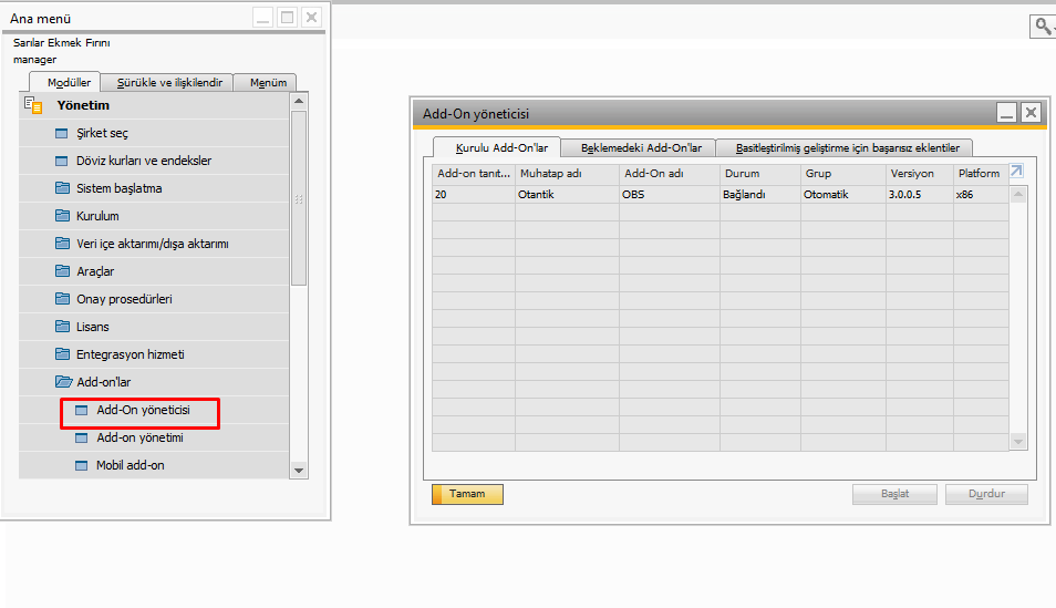 OBS FIRIN OTOMASYON ADD-ON SAP B1 SİSTEME YUKLENMESI, AKTIF EDİLMESİ