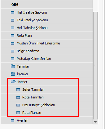 LİSTELER VE MENÜ GÖRÜNTÜLERİ
