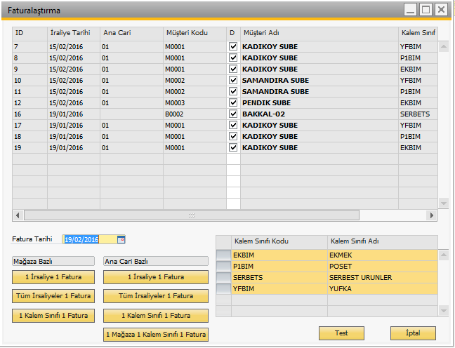 FATURALAŞTIRMA : AŞAMA 2 (SEÇİLEN İRSALİYELERİN İSTENİLEN YAPIDA FATURALAŞMASI)