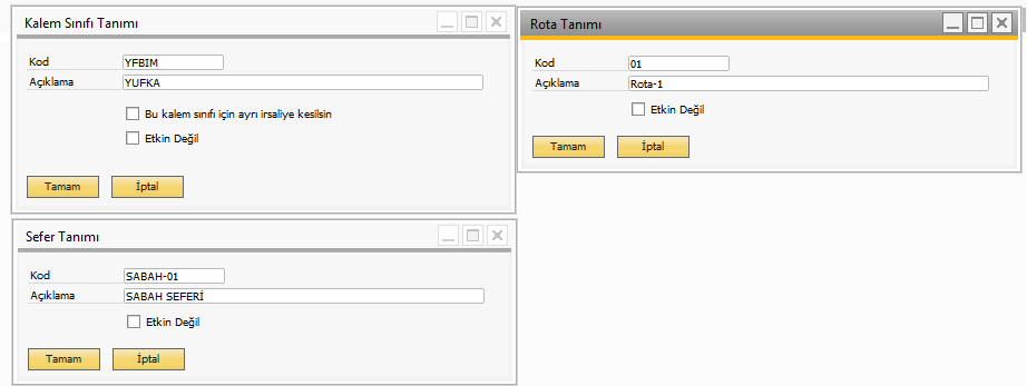 ANA DATALARIN TANIMLANMASI (KALEM, ROTA, SEFER)